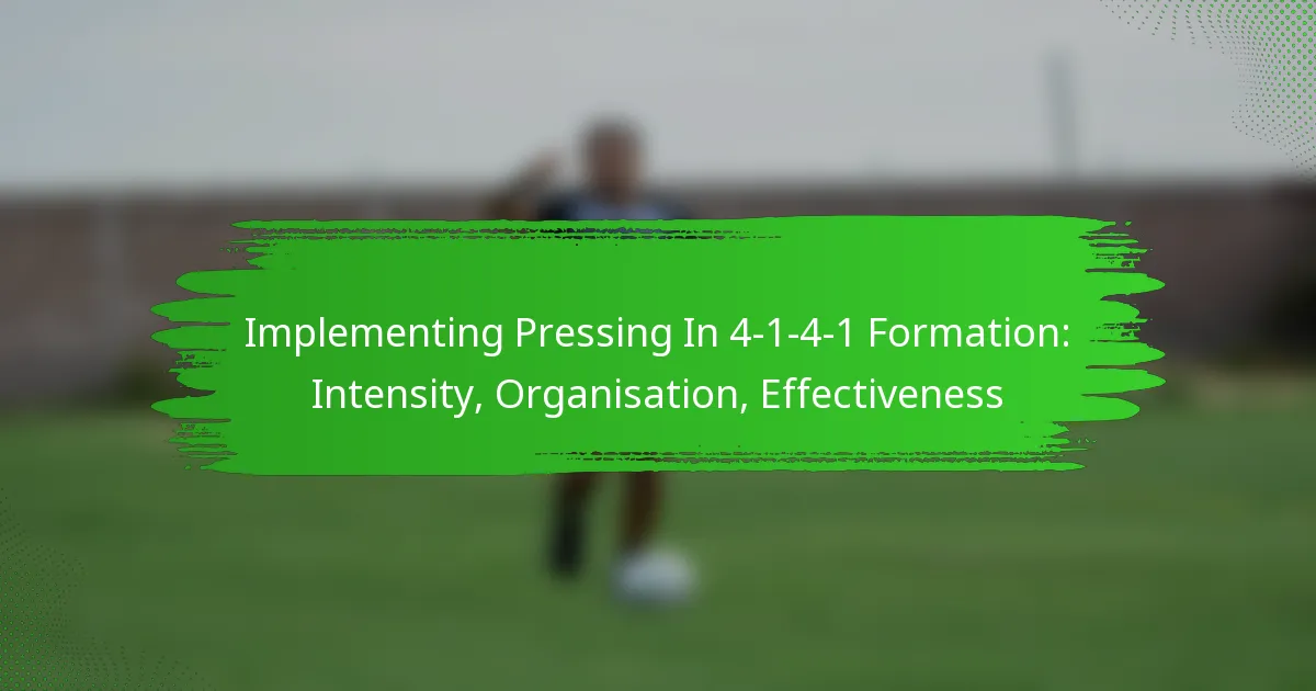 Implementing pressing in the 4-1-4-1 formation requires a cohesive strategy that emphasises intensity, organisation, and effectiveness. This approach focuses on player roles, spatial awareness, and communication to disrupt the opponent’s play while maintaining a solid recovery position.